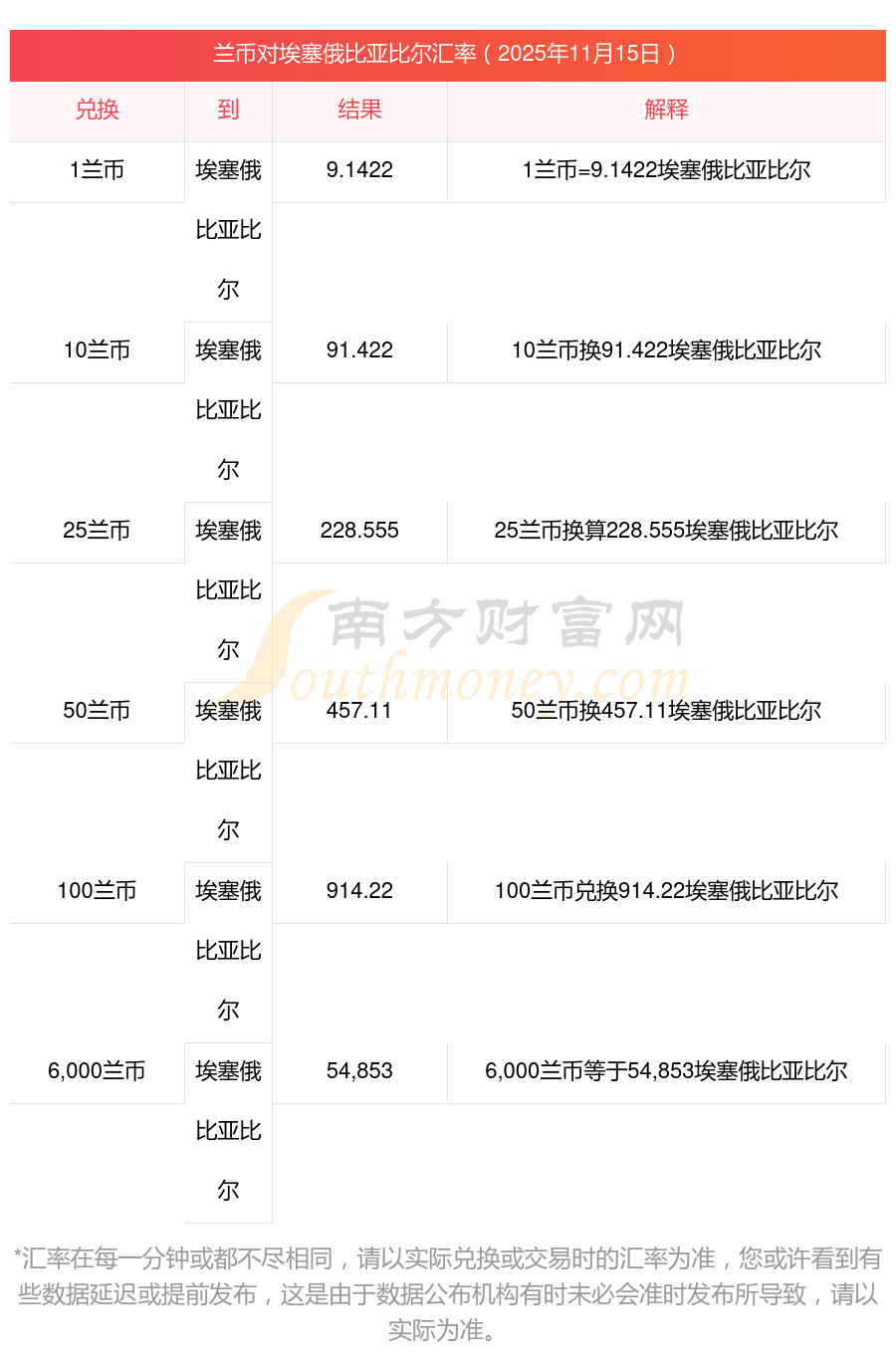 南方財富網(wǎng)為您提供蘭幣兌換埃塞俄比亞比爾匯率最新價格詳情。