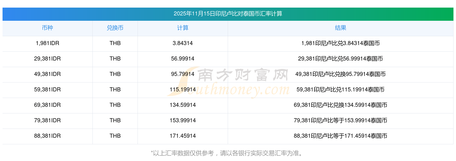 今天匯率更新!2025年11月15日82印尼盧比兌換泰國幣是多少?