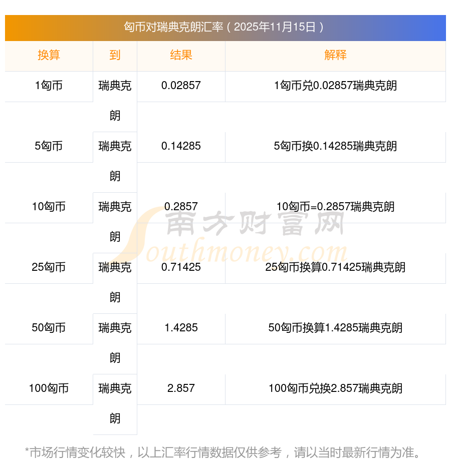 35匈幣兌換瑞典克朗結匯行情 今天匈幣匯率報價查詢2025-11-15