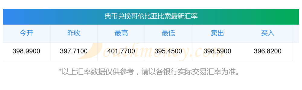 南方財富網為您提供典幣對哥倫比亞比索匯率最新價格詳情。