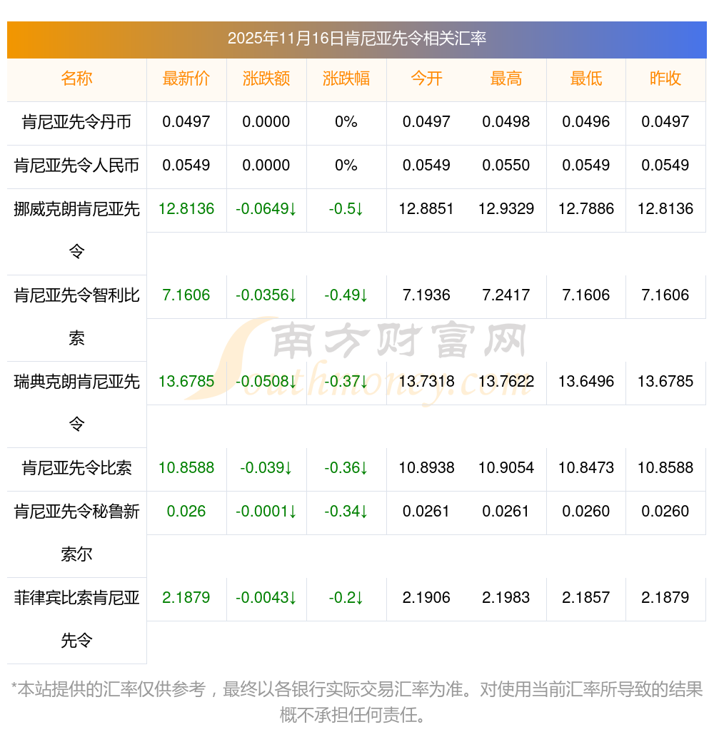 2025年11月16日肯尼亞先令相關(guān)匯率查詢