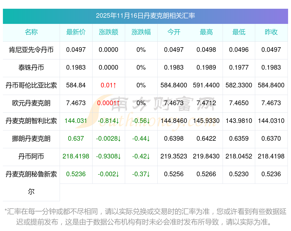根據(jù)2025年11月16日匯率,丹麥克朗兌換馬來西亞幣匯率最新0.643120,今開0.6433,昨收0.6431,最高0.6449,最低0.6422。