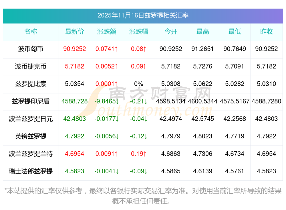 2025年11月16日茲羅提相關(guān)匯率查詢