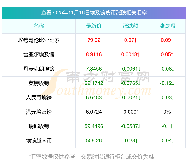 2025年11月16日埃及鎊相關(guān)匯率查詢