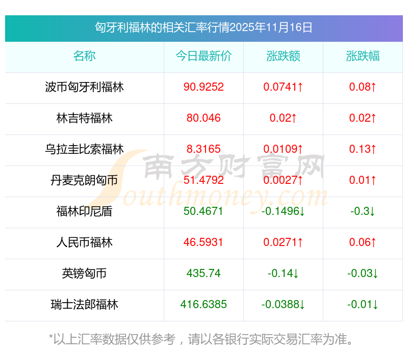 2025年11月16日匈牙利福林相關(guān)匯率查詢