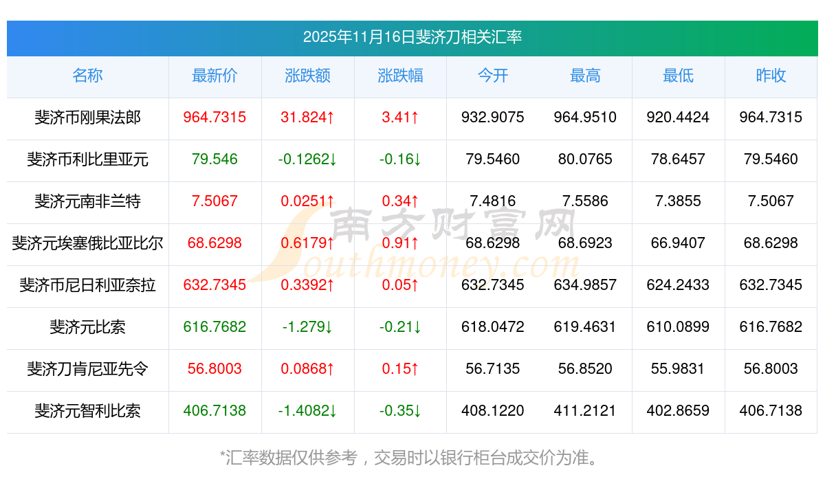 2025年11月16日斐濟刀相關(guān)匯率查詢