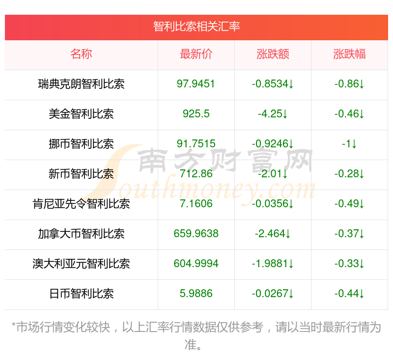 南方財(cái)富網(wǎng)為您提供智利比索對秘魯新索爾匯率最新價(jià)格詳情。