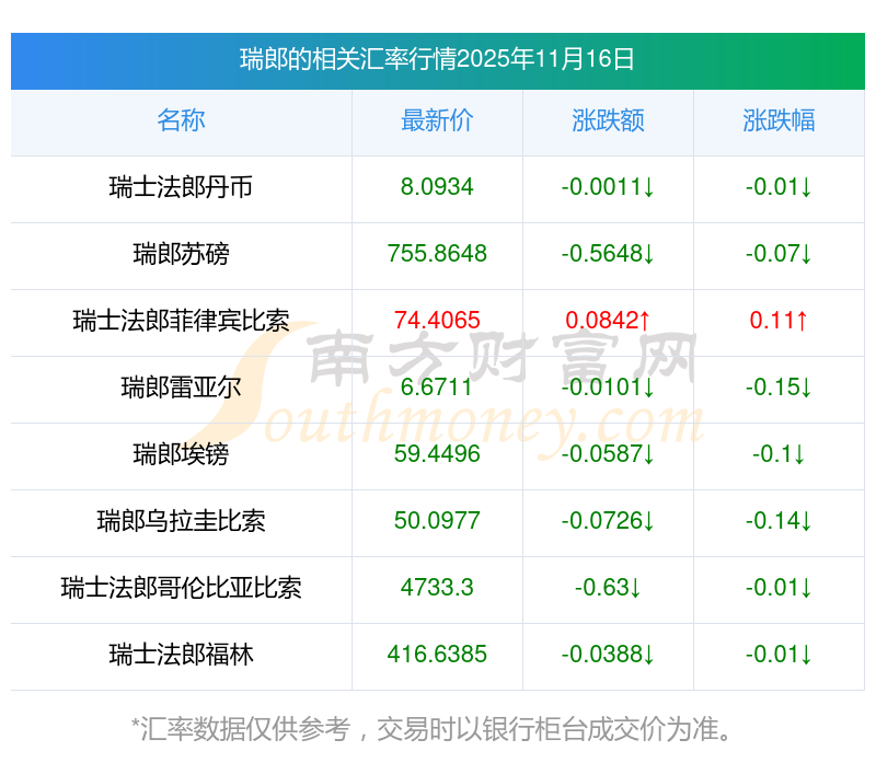 2025年11月16日瑞郎相關(guān)匯率查詢