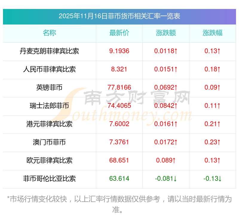 2025年11月16日菲幣相關(guān)匯率查詢