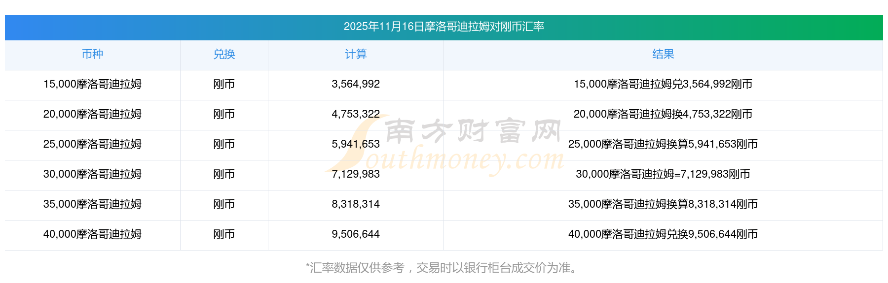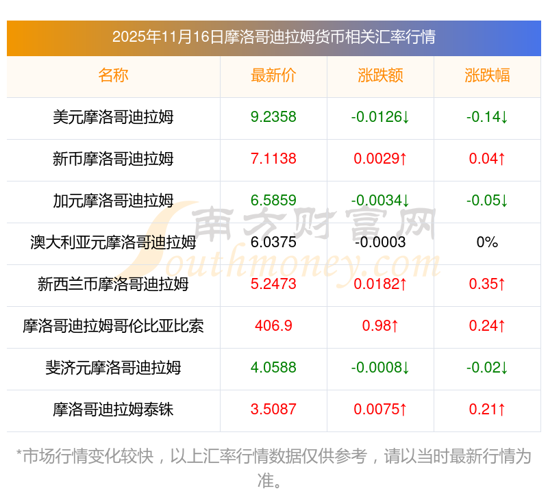 摩洛哥迪拉姆匯率調(diào)整嗎?今天摩洛哥迪拉姆與剛幣匯率是多少11月16日