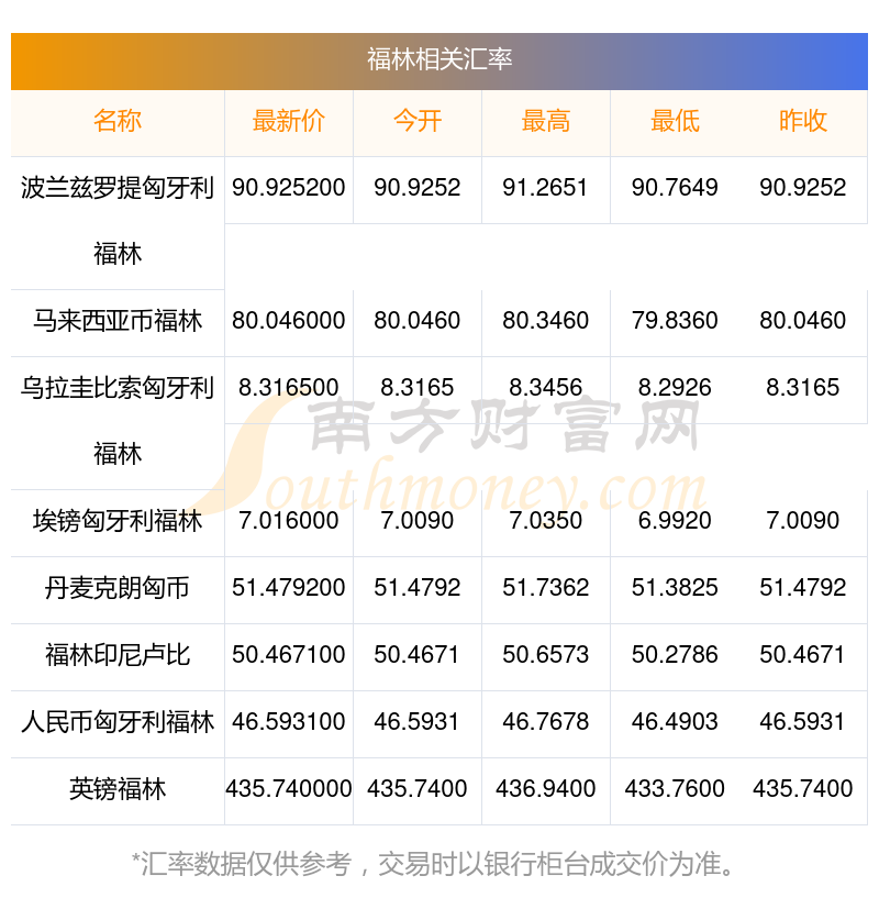 2025年11月16日福林相關(guān)匯率查詢