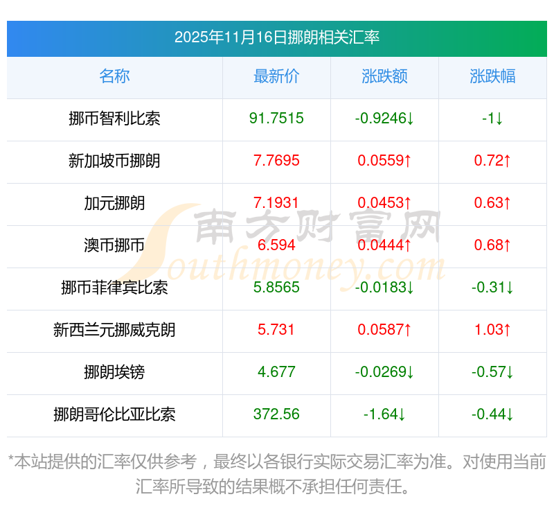 2025年11月16日挪朗相關匯率查詢