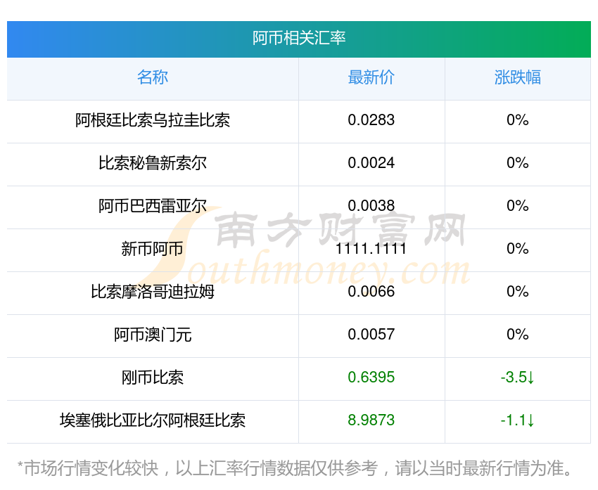 南方財(cái)富網(wǎng)為您提供阿幣對(duì)智利比索匯率最新價(jià)格詳情。