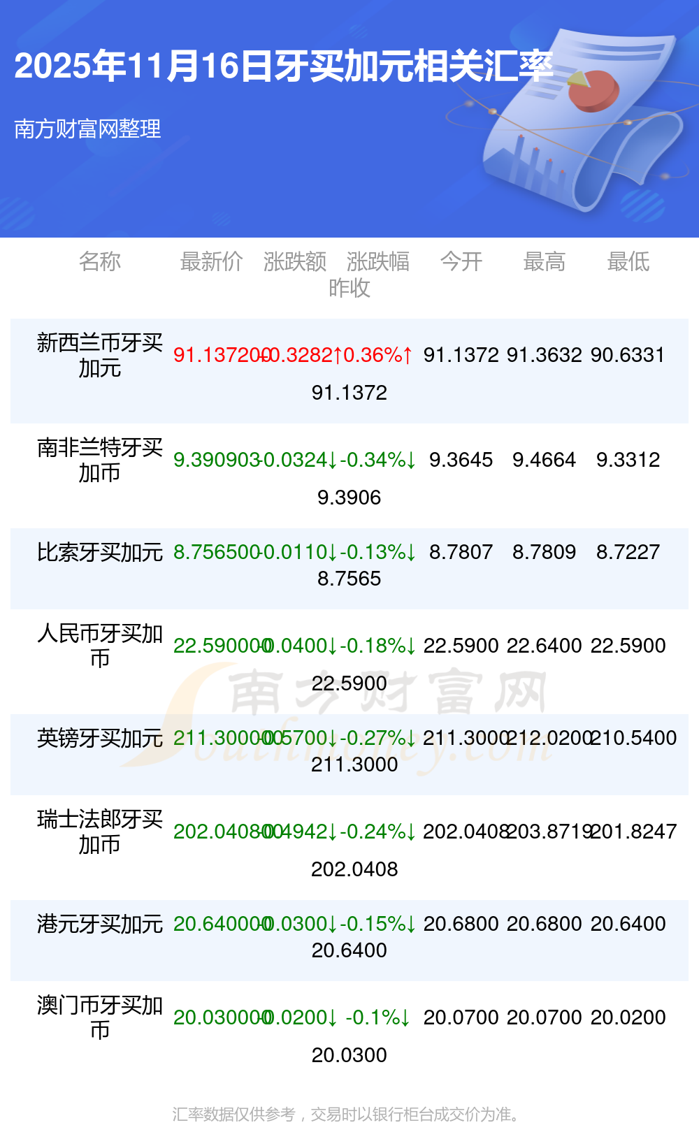 2025年11月16日牙買加元相關(guān)匯率查詢