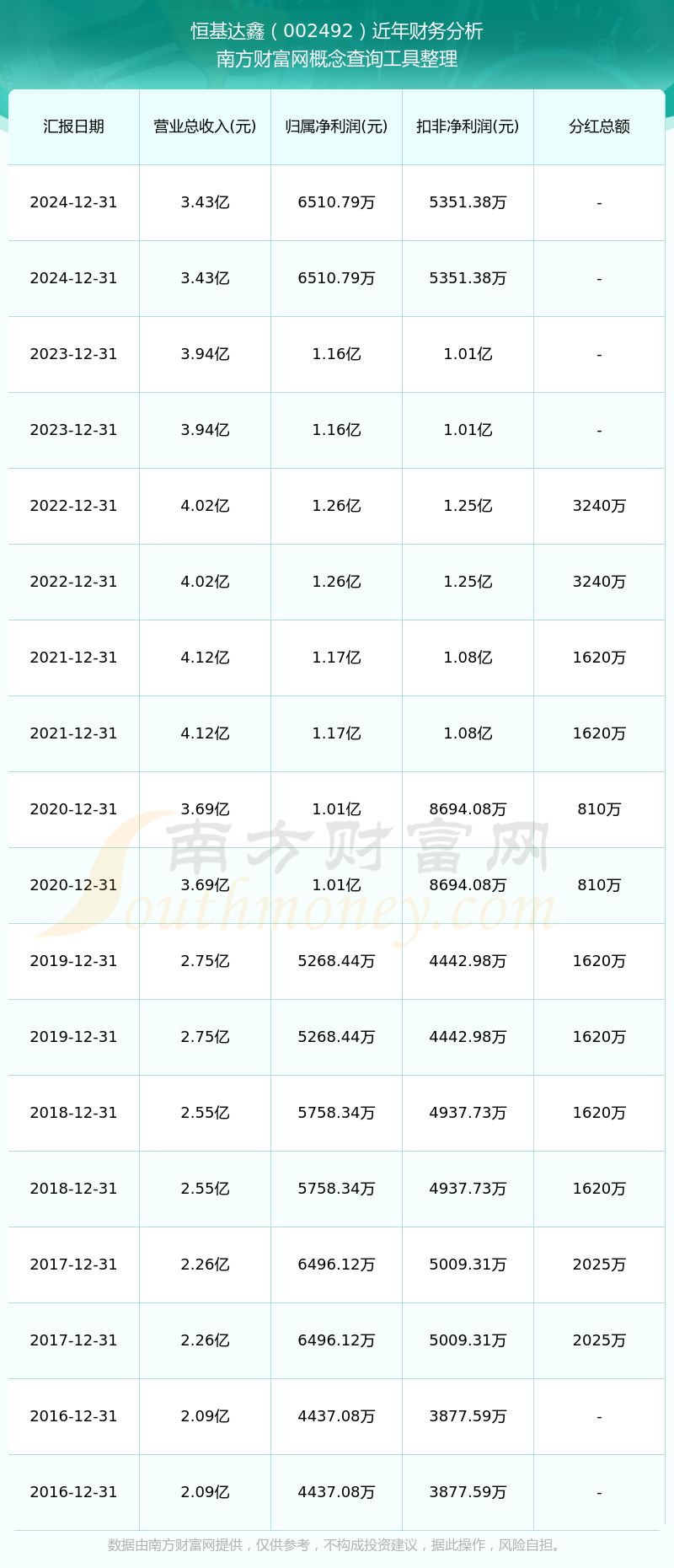 恒基達(dá)鑫歷年分紅派息情況如下表所示: