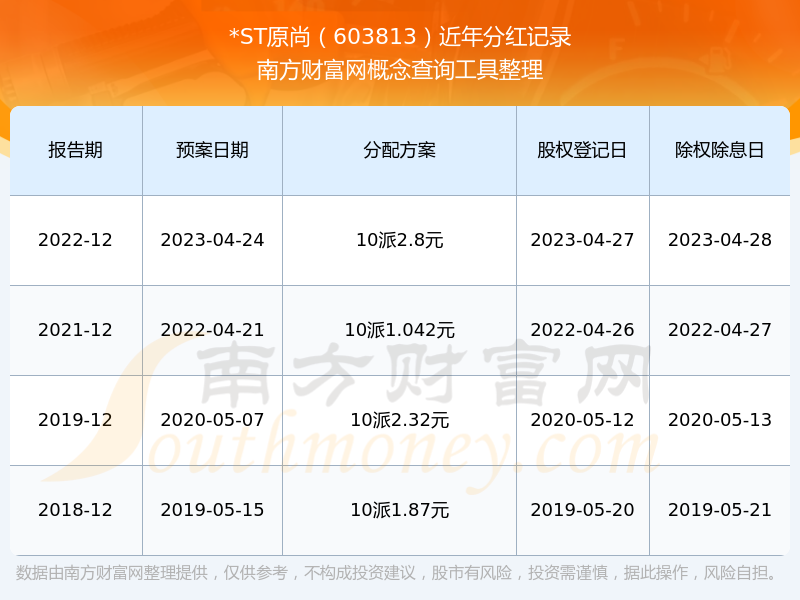 *ST原尚最新一次公布的分紅方案:10派2.8元。