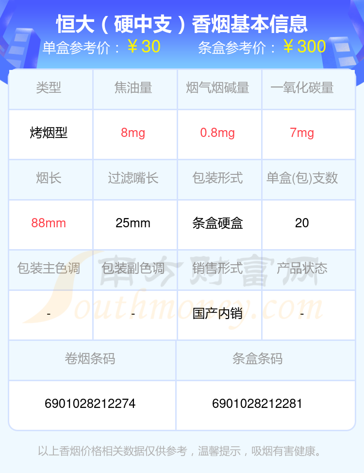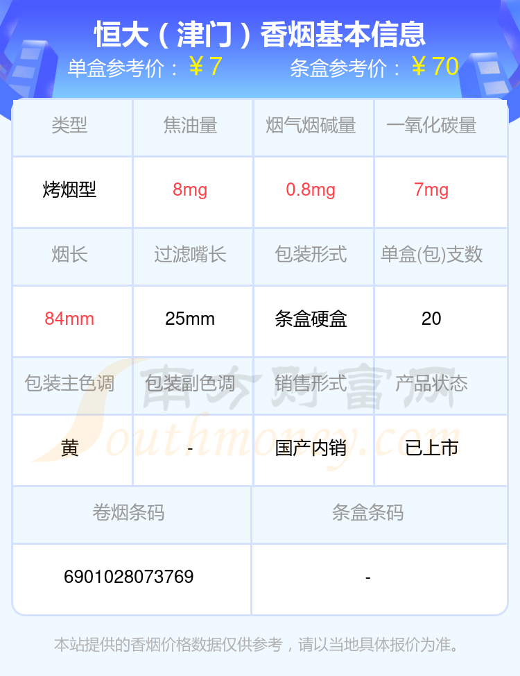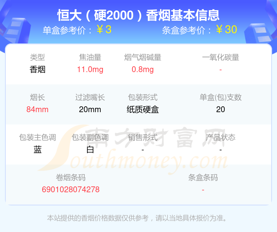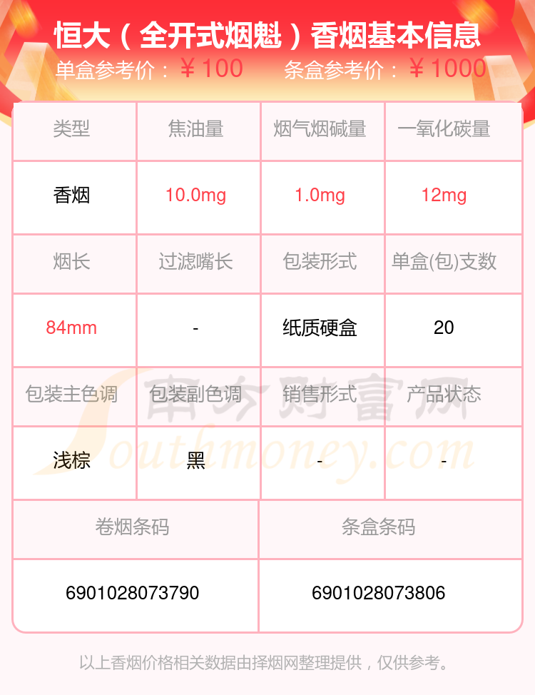 2025恒大香煙價格表:尼古丁低于1mg的煙列表一覽