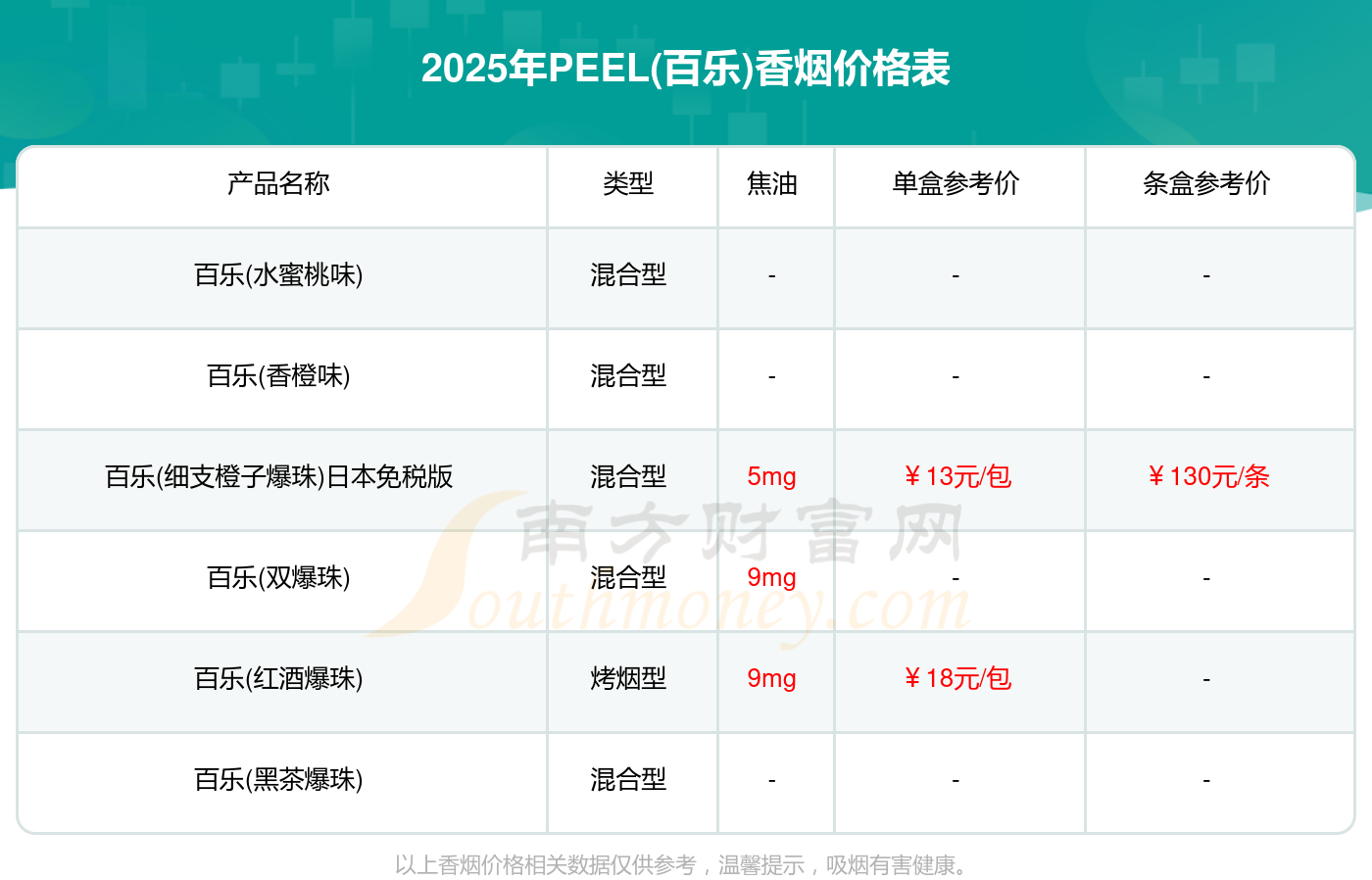 2025年P(guān)EEL(百樂)香煙價(jià)格表大全(多少錢一條)