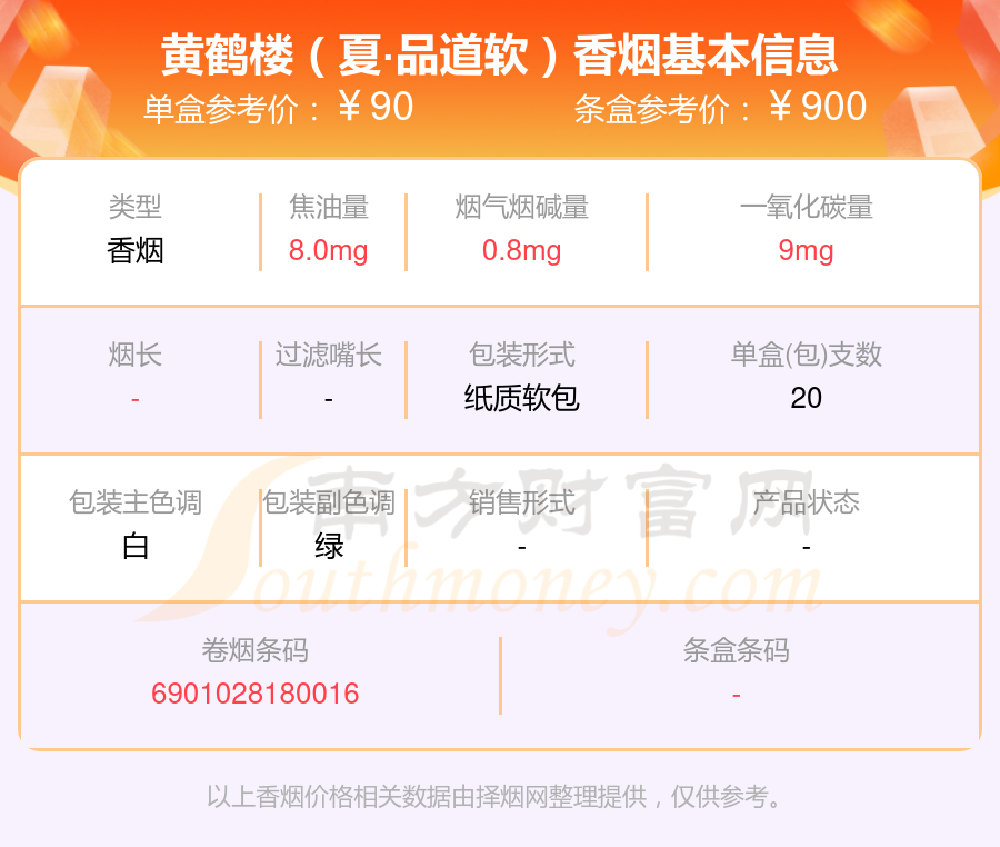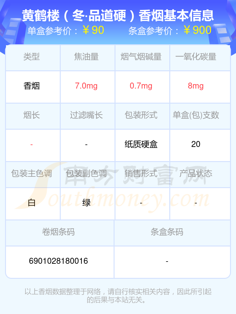 擇煙網(wǎng)為大家盤點(diǎn)了50元至90元的黃鶴樓香煙,有黃鶴樓(夏·品道軟)、黃鶴樓(冬·品道硬)、黃鶴樓(硬天驕?zhǔn)サ兀ⅫS鶴樓(正道)、黃鶴樓(硬感恩)舊版、黃鶴樓(硬感恩)、黃鶴樓(硬長漫天游)、黃鶴樓(軟漫天游)、黃鶴樓(喜相逢·福)、黃鶴樓(喜相逢·金玫瑰)等,詳細(xì)價(jià)格如下: