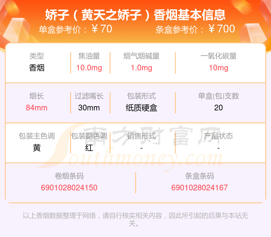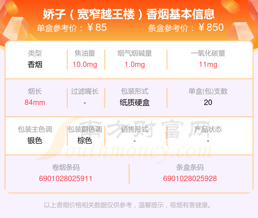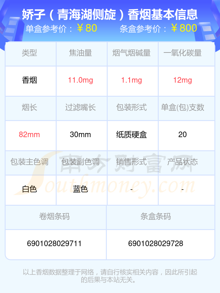 嬌子香煙高于50元的煙有嬌子(紅韻)、嬌子(寬窄越王樓)、嬌子(青海湖側旋)、嬌子(寬窄如意保濕版)307、嬌子(硬正黃天子)、嬌子(寬窄逍遙)軟、嬌子(九寨溝)、嬌子(黃天之嬌子)、嬌子(硬功夫王)、嬌子(紅傳奇天子)等,詳細價格如下: