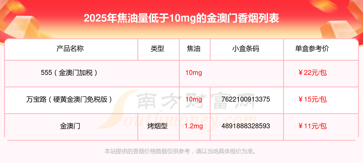 焦油量低于10mg的金澳門香煙有哪些?擇煙網(wǎng)為大家整理盤點,分別有: