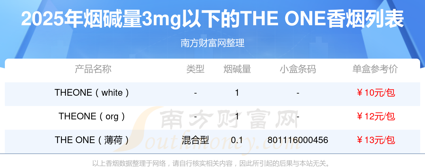 THEONE(white)參考價(jià)10元/包、THEONE(org)參考價(jià)12元/包、THE ONE(薄荷)參考價(jià)13.0元/包等。
