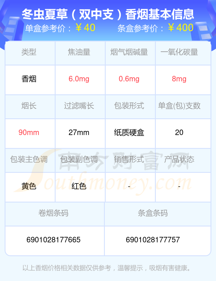 冬蟲夏草香煙創(chuàng)牌于2001年,是內(nèi)蒙古昆明卷煙有限公司的高端品牌之一,冬蟲夏草是一種傳統(tǒng)的名貴滋補(bǔ)中藥材,冬蟲夏草香煙的特色是將冬蟲夏草,西洋參經(jīng)科學(xué)提純配比加入煙絲。冬蟲夏草鐵盒16支裝在市面上不多見,冬蟲夏草在全國(guó)擁有較高的知名度,但銷售的受限使冬蟲夏草成為真正意義上的區(qū)域性卷煙奢侈品。