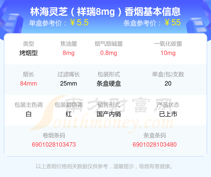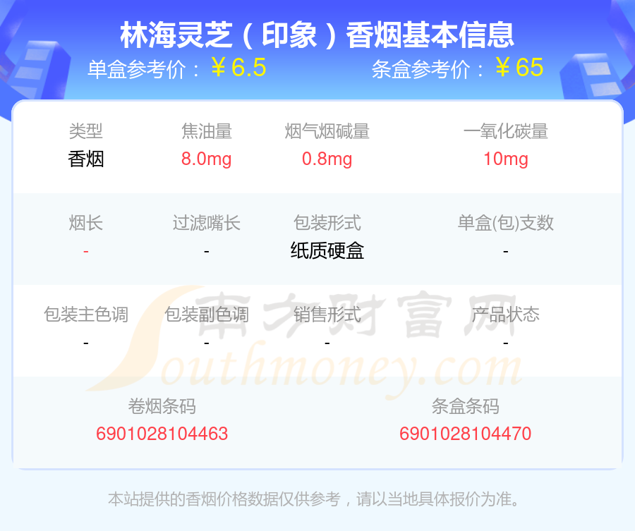 林海靈芝(軟紅)參考價2元/包、林海靈芝(16支)參考價3.0元/包、林海靈芝(硬紅)參考價5.5元/包、林海靈芝(如意)參考價4.5元/包、林海靈芝(硬白)參考價3.0元/包、林海靈芝(藍色經(jīng)典)參考價4元/包、林海靈芝(祥瑞8mg)參考價5.5元/包、林海靈芝(軟如意)參考價4.5元/包、林海靈芝(印象)參考價6.5元/包、林海靈芝(軟白)參考價3元/包等。