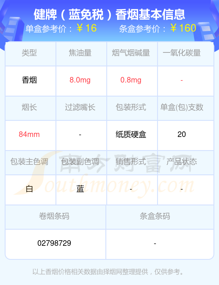 2、健牌(藍(lán)免稅)