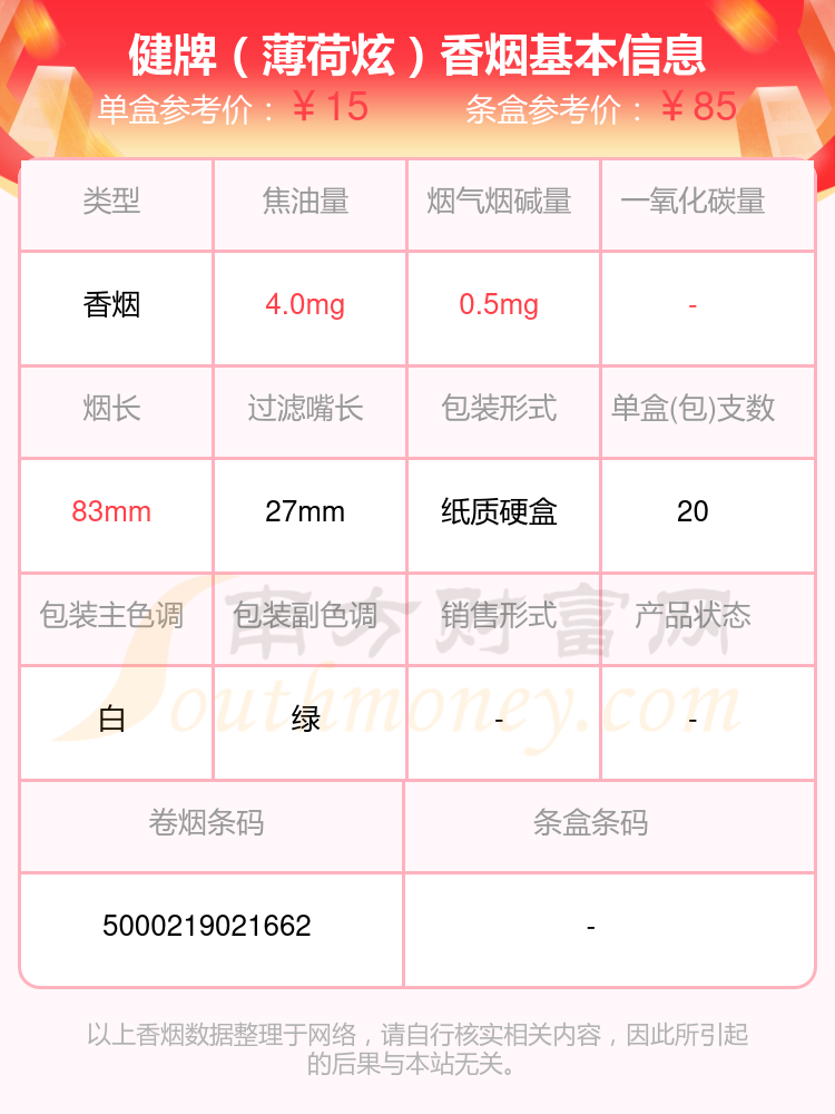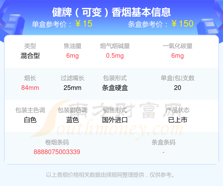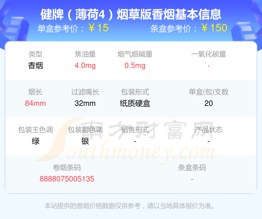 以上香煙價(jià)格相關(guān)數(shù)據(jù)僅供參考,溫馨提示,吸煙有害健康。