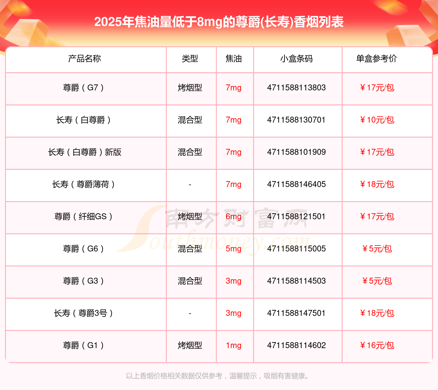 以上香煙價格相關數(shù)據(jù)僅供參考,溫馨提示,吸煙有害健康。