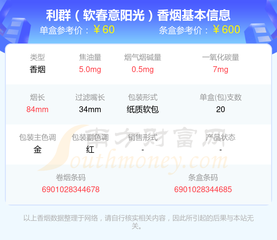 以上香煙價格相關(guān)數(shù)據(jù)僅供參考,溫馨提示,吸煙有害健康。