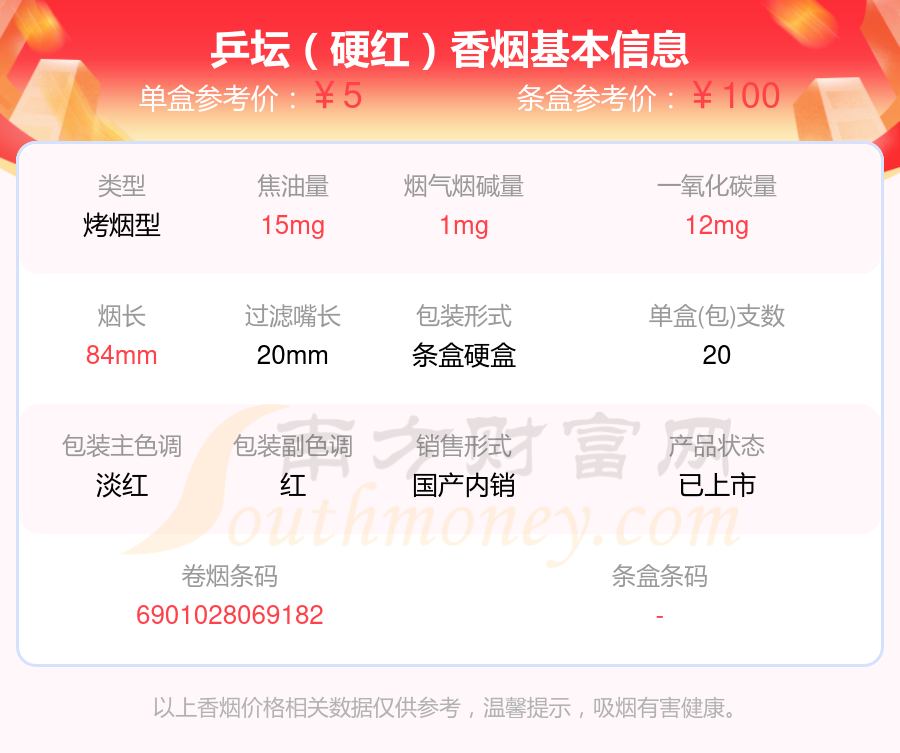 乒壇(硬紅)參考價(jià)5元/包、乒壇(金紅)參考價(jià)5元/包、乒壇(硬白)參考價(jià)3元/包等。