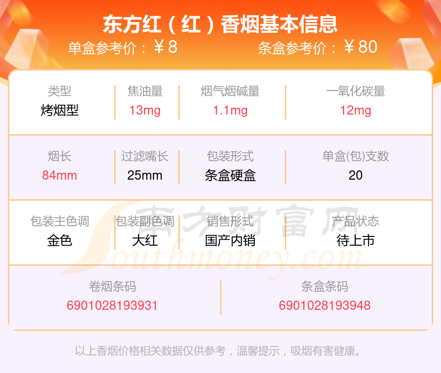 東方紅(醇香)參考價(jià)4.5元/包、東方紅(紅)參考價(jià)8元/包等。