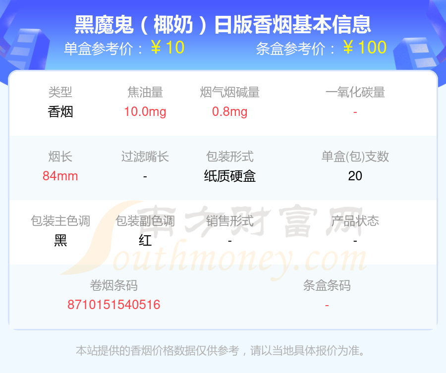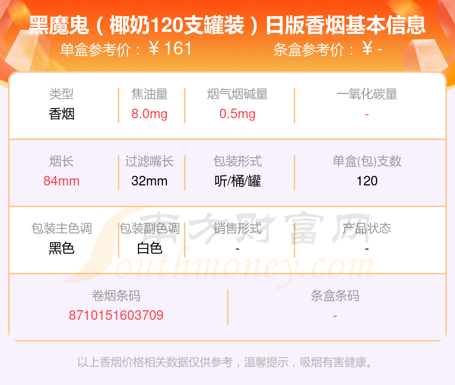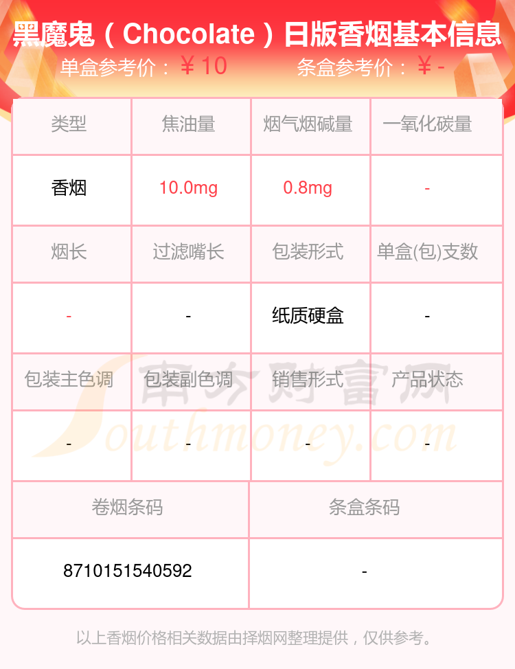 BLACK DEVIL(黑魔鬼)香煙焦油量8mg~15mg的煙有哪些?擇煙網(wǎng)為大家整理提供,分別有:黑魔鬼(椰奶120支罐裝)日版、黑魔鬼(120支罐裝巧克力風(fēng)味)日版、黑魔鬼(椰奶)日版、黑魔鬼(巧克力風(fēng)味)10支裝、黑魔鬼(摩卡香草)日版、黑魔鬼(椰奶)10支裝、黑魔鬼(藍(lán)莓爆)、黑魔鬼(薄荷香草)日版、黑魔鬼(Chocolate)日版、黑魔鬼(北極薄荷)日版等,具體價格如下: