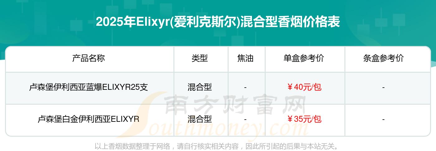 2025Elixyr(愛利克斯?fàn)?混合型香煙最新價格: