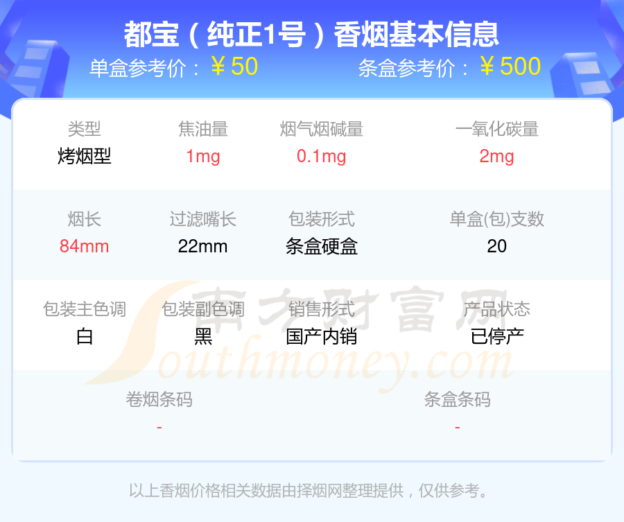 都寶(3mg)參考價12.0元/包、都寶(純正1號)參考價50元/包等。