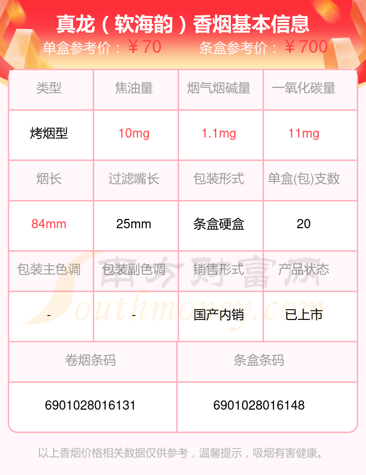 真龍(金韻)參考價80.0元/包、真龍(軟贊歌)參考價80.0元/包、真龍(軟海韻)參考價70元/包等。