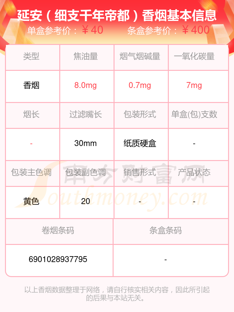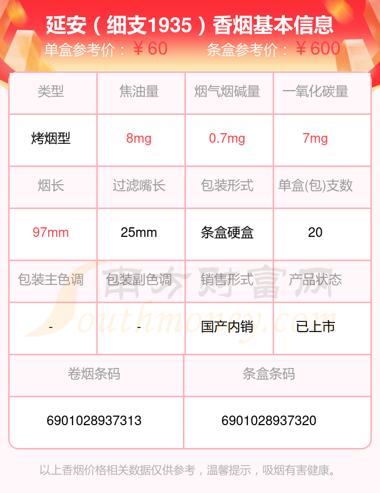40-60元的延安香煙有哪些?擇煙網(wǎng)為大家整理盤點,分別有:延安(細支1935)、延安(1935)、延安(中支1935)、延安(1935中支)、延安(紅色記憶)、延安(細支千年帝都)、延安(千年帝都細支)等,具體價格如下: