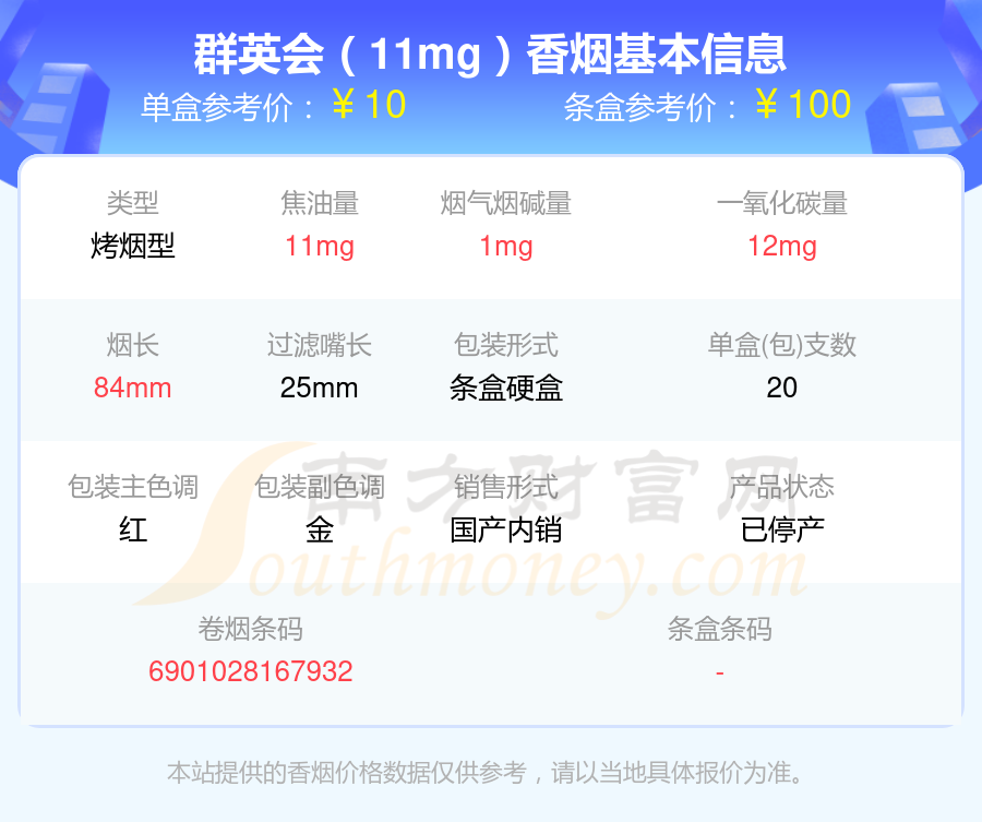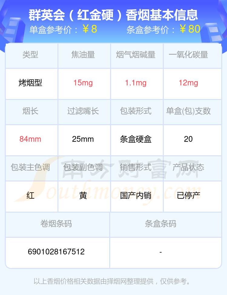 10元以下的群英會香煙有哪些?擇煙網(wǎng)為大家整理盤點,有群英會(紅金硬)、群英會(白軟)、群英會(11mg)等,詳細價格如下: