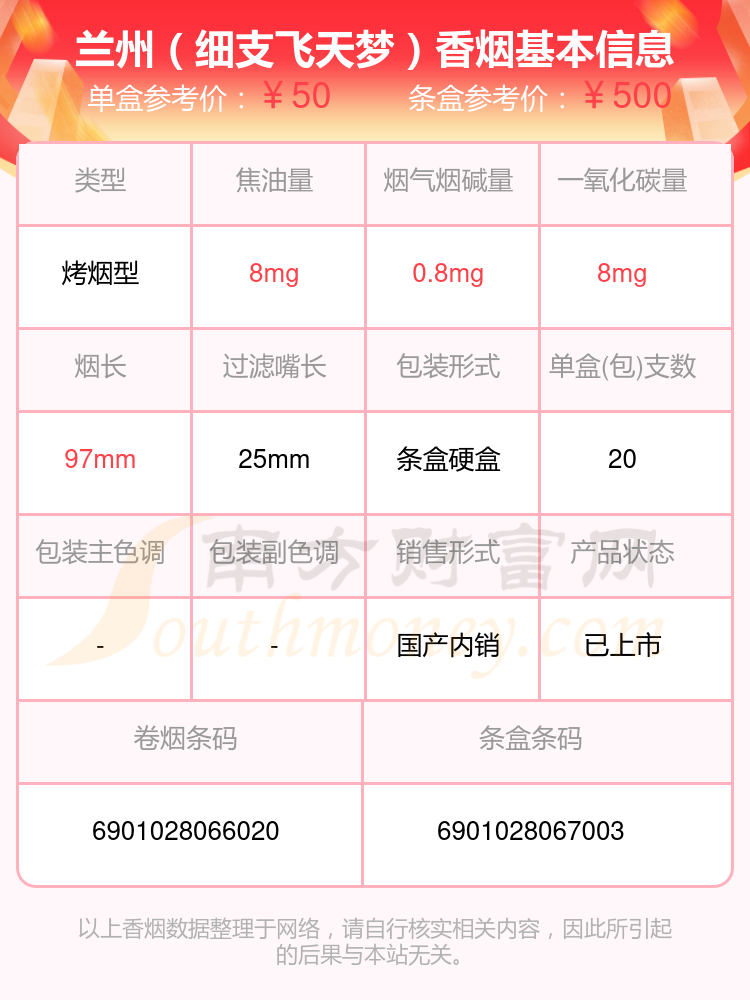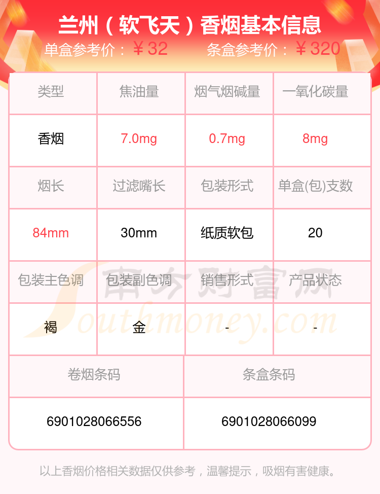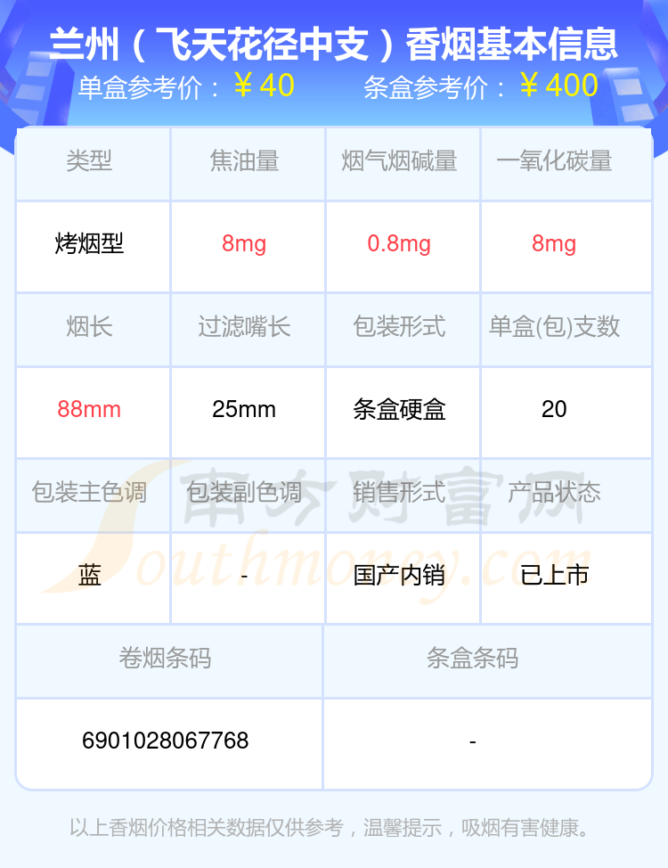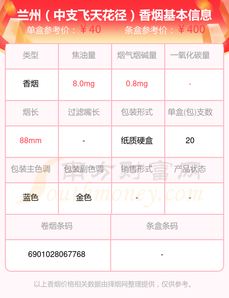 蘭州(細(xì)支飛天夢(mèng))參考價(jià)50元/包、蘭州(中支飛天花徑)參考價(jià)40.0元/包、蘭州(飛天花徑中支)參考價(jià)40元/包、蘭州(軟飛天)參考價(jià)32.0元/包、蘭州(硬經(jīng)典)參考價(jià)30.0元/包、蘭州(隴飛九天)參考價(jià)30.0元/包、蘭州(粹經(jīng)典)參考價(jià)30元/包、蘭州(黑中支)參考價(jià)30元/包等。