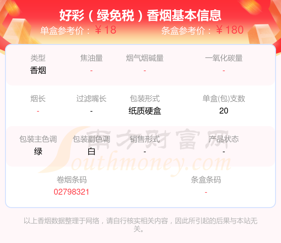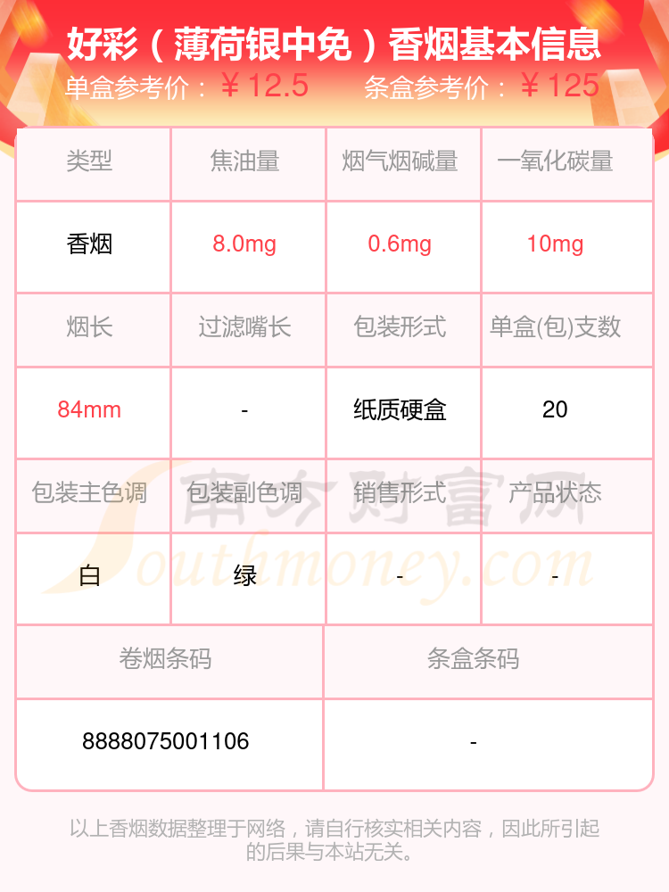 LUCKY STRIKE(好彩)香煙10元~50元的煙分別有好彩(硬紅)俄羅斯加稅版參考價(jià)36.0元/包、好彩(綠港版)參考價(jià)29.0元/包、好彩(綠免稅)參考價(jià)18.0元/包、好彩(薄荷中免)參考價(jià)18.0元/包、好彩(薄荷銀中免)參考價(jià)12.5元/包、好彩(黑中免)參考價(jià)12.0元/包、好彩(藍(lán)中免)參考價(jià)12.0元/包、好彩(紅免稅)參考價(jià)10.0元/包、好彩(歐盟免稅銀)參考價(jià)10.0元/包、好彩(紅)參考價(jià)10元/包等。