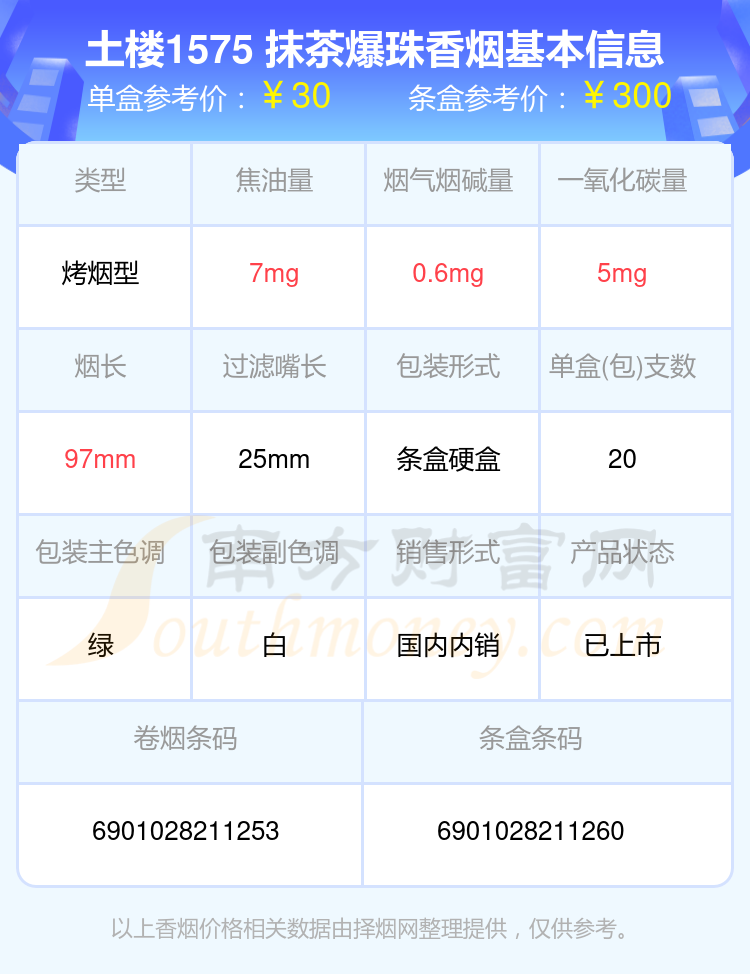 土樓1575 抹茶爆珠單盒參考價(jià):30元