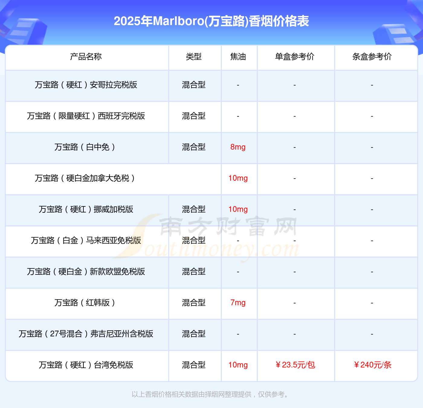 萬(wàn)寶路(灰中免)單包參考價(jià):10元