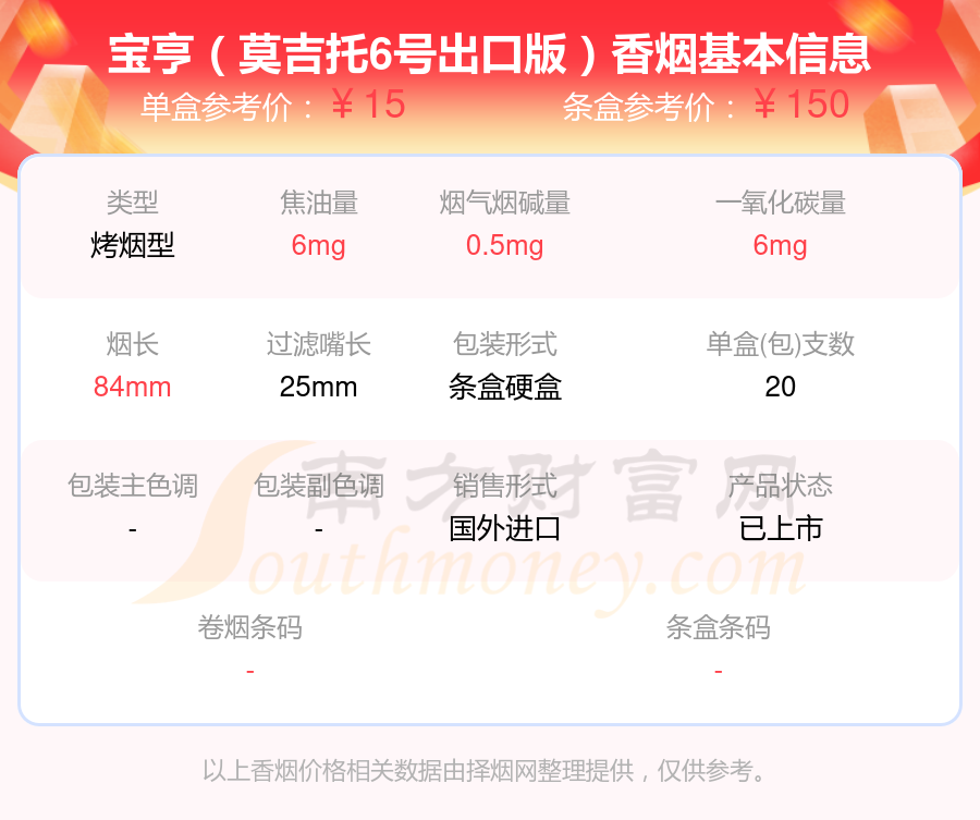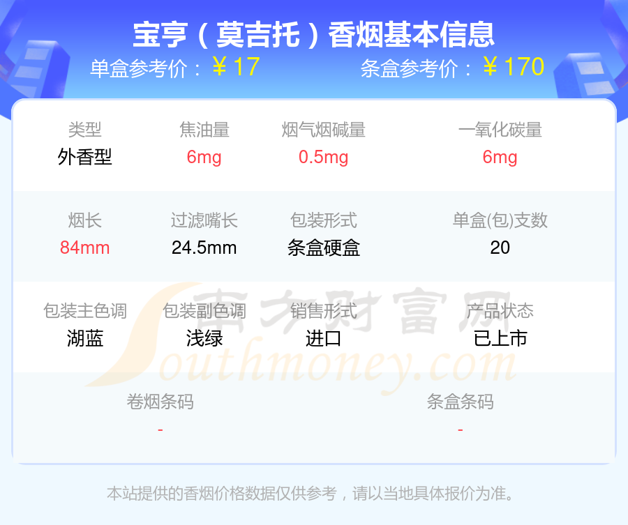 以上香煙數(shù)據(jù)整理于網(wǎng)絡,請自行核實相關(guān)內(nèi)容,因此所引起的后果與本站無關(guān)。