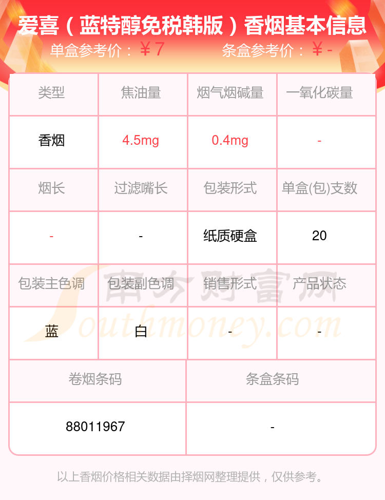 以上香煙數(shù)據(jù)整理于網(wǎng)絡(luò),請(qǐng)自行核實(shí)相關(guān)內(nèi)容,因此所引起的后果與本站無(wú)關(guān)。