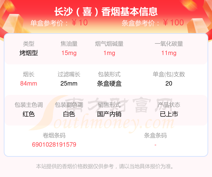 長沙(喜)參考價10元/包、長沙(軟)參考價6元/包等。