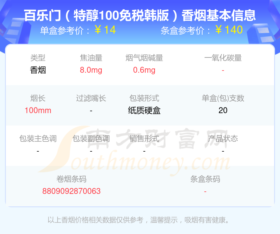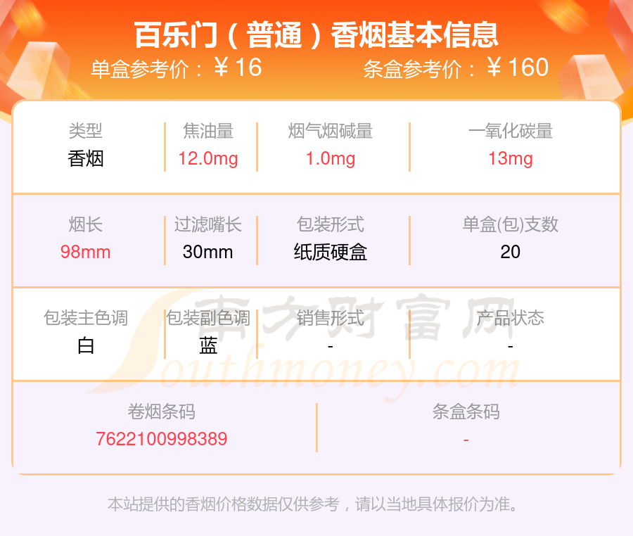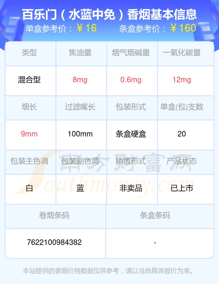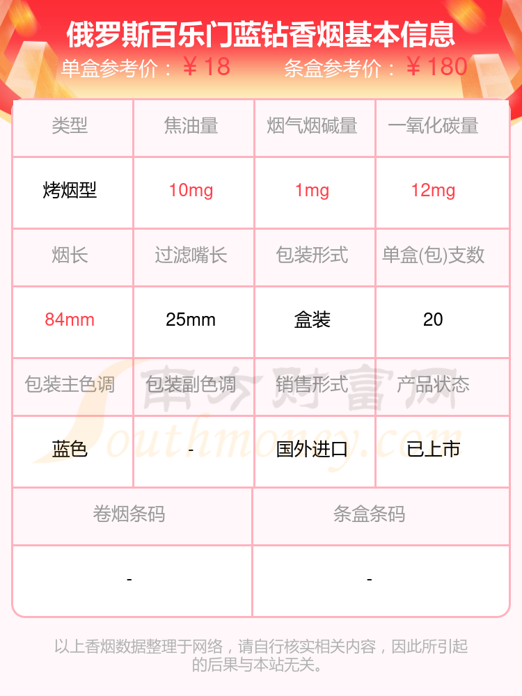 以上香煙數(shù)據(jù)整理于網(wǎng)絡(luò),請自行核實相關(guān)內(nèi)容,因此所引起的后果與本站無關(guān)。