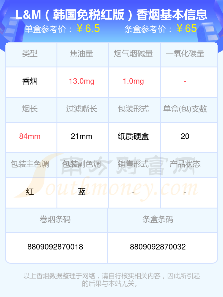 L&M(韓國免稅紅版)單包參考價:6.5元