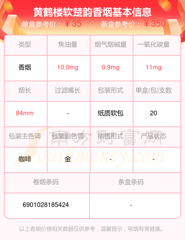 黃鶴樓軟楚韻單盒參考價(jià):35元